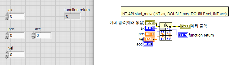 start_move(axis, pos, vel, accel) // 동작 중간에 다른 명령어로 동작할 수 있음.