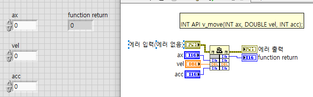move(axis, pos, vel, accel) // 지정위치까지 이동할때까지는 다른 명령어가 안됨.