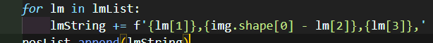 lmString += f'{lm[1]},{img.shape[0] - lm[2]},{lm[3]},'