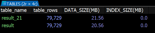 round(data_length/(1024*1024),2) as 'DATA_SIZE(MB)',