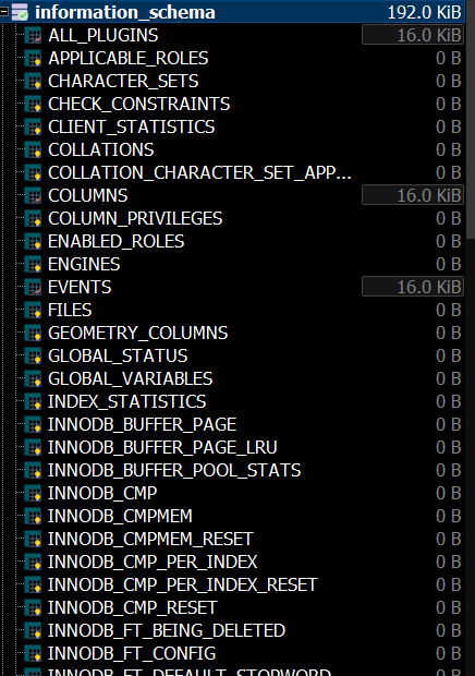 FROM information_schema.TABLES
